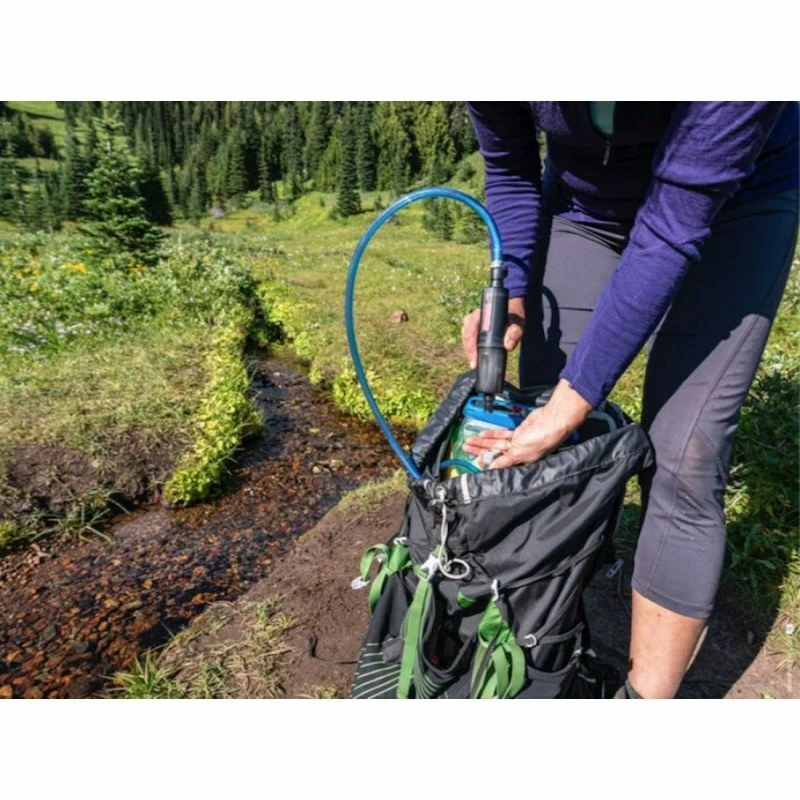 - Pas de perte de temps : remplissez un conteneur et filtrez en marchant. Conçu pour assurer un bon débit, pour boire facilement