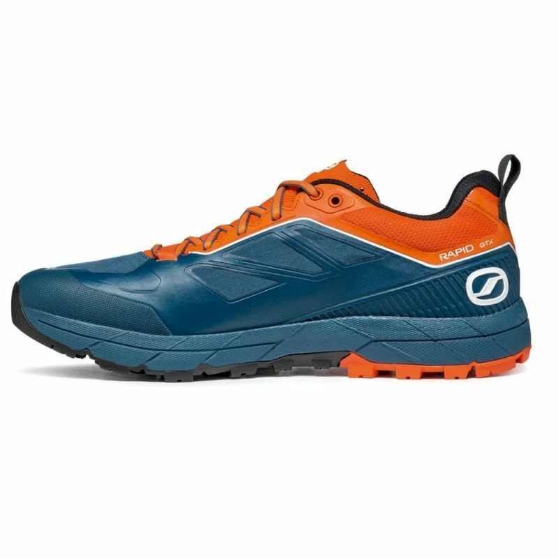 Idéale sur les sentiers techniques et pour les marches d’approche, la chaussure Rapid GTX de la marque Scarpa est conçue pour se déplacer rapidement en terrain montagneux et garder les pieds au sec, même en cas de pluie ! Dotée d’une tige en mesh avec des inserts en TPU pour le soutien latéral et un filet anti-pression et antichoc sur la languette, elle assure une protection des zones les plus sensibles tout en étant confortable et respirante. Sa semelle extérieure Vibram Megagrip avec climbing zone est adhérente sur toutes les surfaces et permet de grimper sur les voies les plus faciles. Enfin, la doublure Gore-Tex® Invisible Fit rend la chaussure imperméable sans compromettre l’ajustement, la souplesse et le poids. L’alliance du savoir-faire de Scarpa et de toutes ces technologies fait de la Rapid GTX une chaussure extrêmement complète, à mi-chemin entre la randonnée, la course à pied, l’alpinisme et l’escalade. La chaussure 4 en 1 finalement !