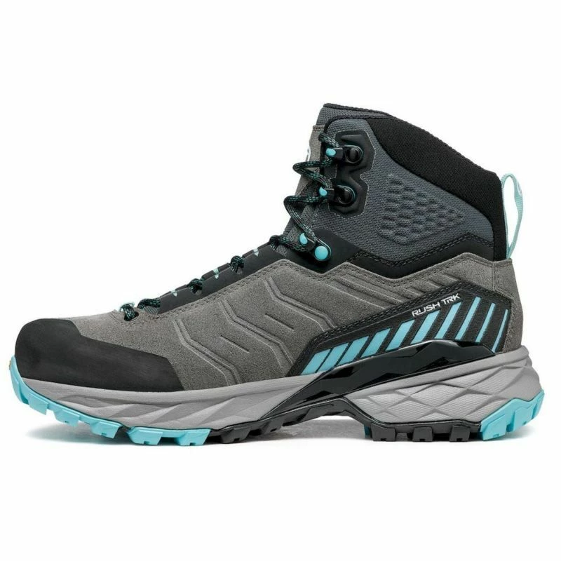 Idéales pour les randonnées en montagne à la journée, les chaussures de trekking pour femme Rush Trek GTX, conçue par Scarpa, se détachent des autres grâce à leur confort et stabilité.