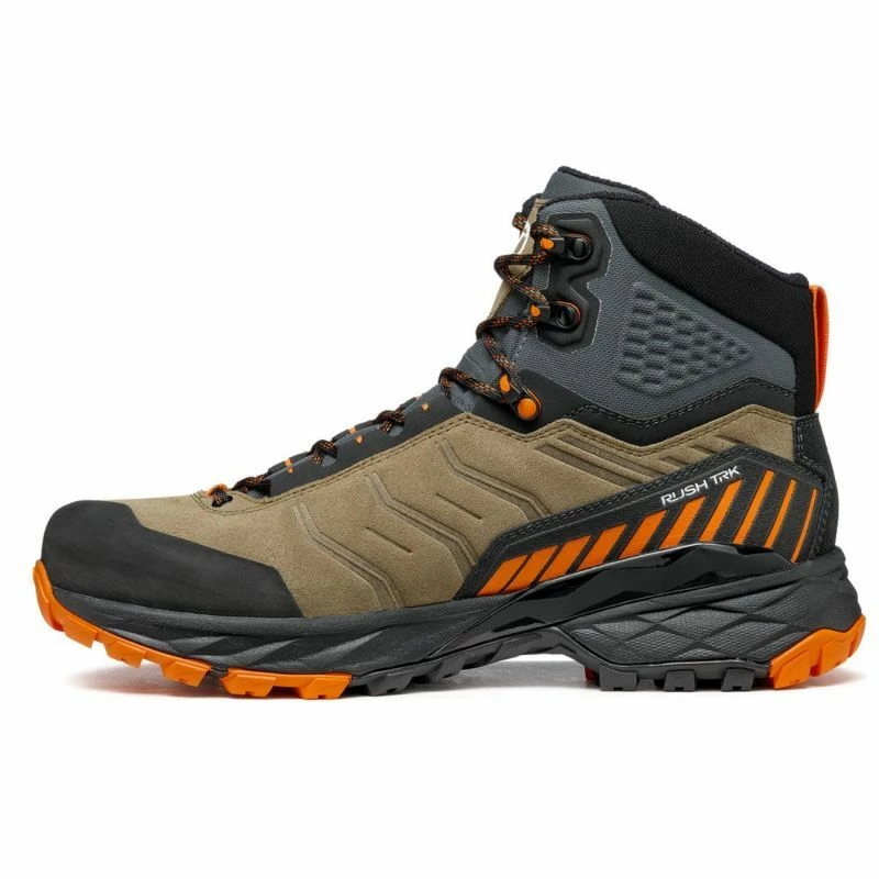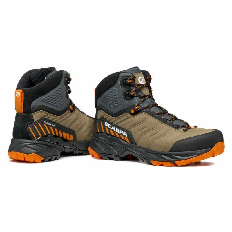 Idéales pour les randonnées en montagne à la journée, les chaussures de trekking pour homme Rush Trek GTX, conçue par Scarpa, se détachent des autres grâce à leur confort et stabilité.