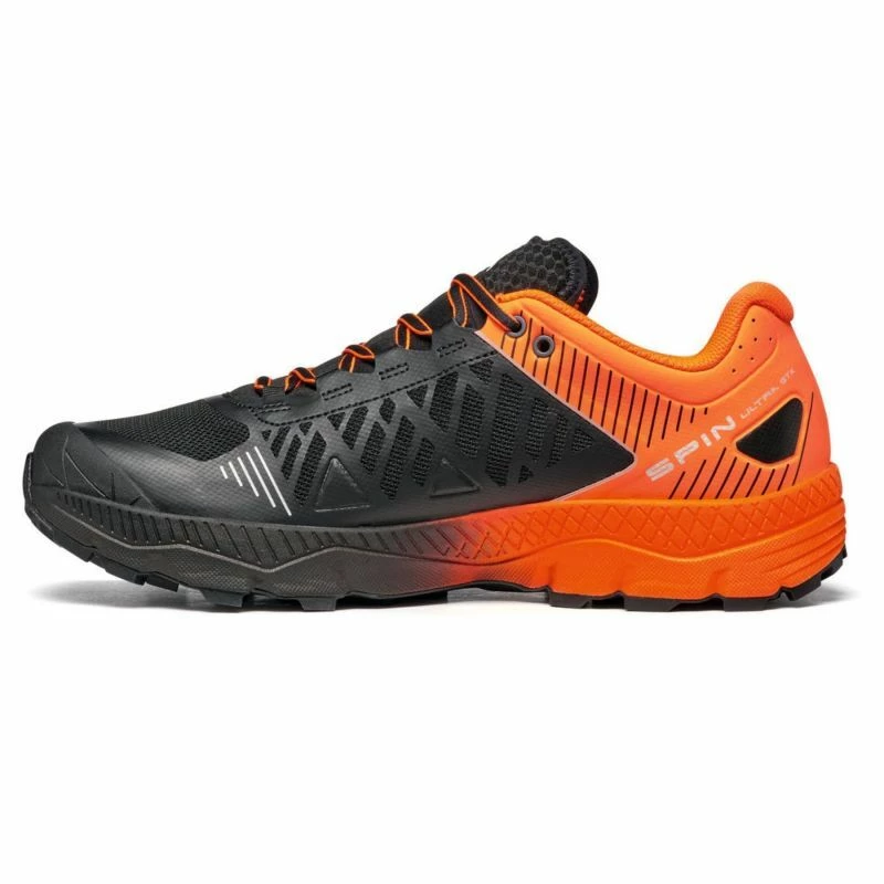 Les Spin Ultra GTX conçues par Scarpa sont des chaussures de trail pour homme, idéales pour ceux qui souhaitent des chaussures réactives avec une adhérence maximale. En effet, grâce à leur semelle extérieure Vibram® Megagrip, les Spin Ultra GTX vous assurent une traction optimale en montée, mais aussi une excellente retenue en descente, peu importe le terrain. D’autre part, la semelle intermédiaire en EVA vous accorde une réactivité accrue et meilleure absorption des chocs durant votre course. Enfin, vous apprécierez les Spin Ultra GTX pour leur tige en mesh respirant avec TPU thermosoudé, garantissant une meilleure ventilation à l’intérieur de vos chaussures, ainsi qu’une longévité accrue de vos chaussures de trail Scarpa. Prenez l’avantage sur tous les terrains grâce aux Spin Ultra de Scarpa GTX !